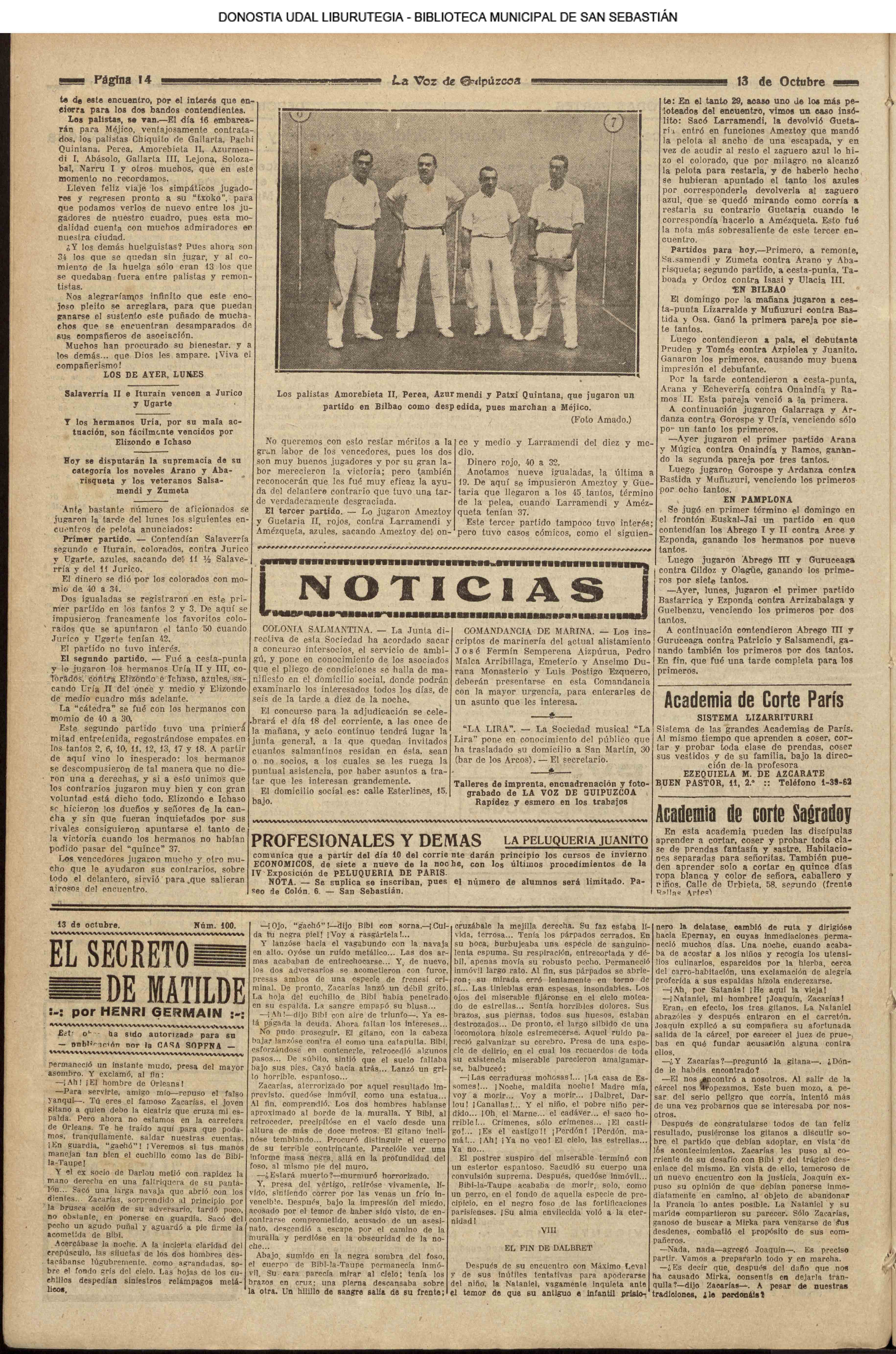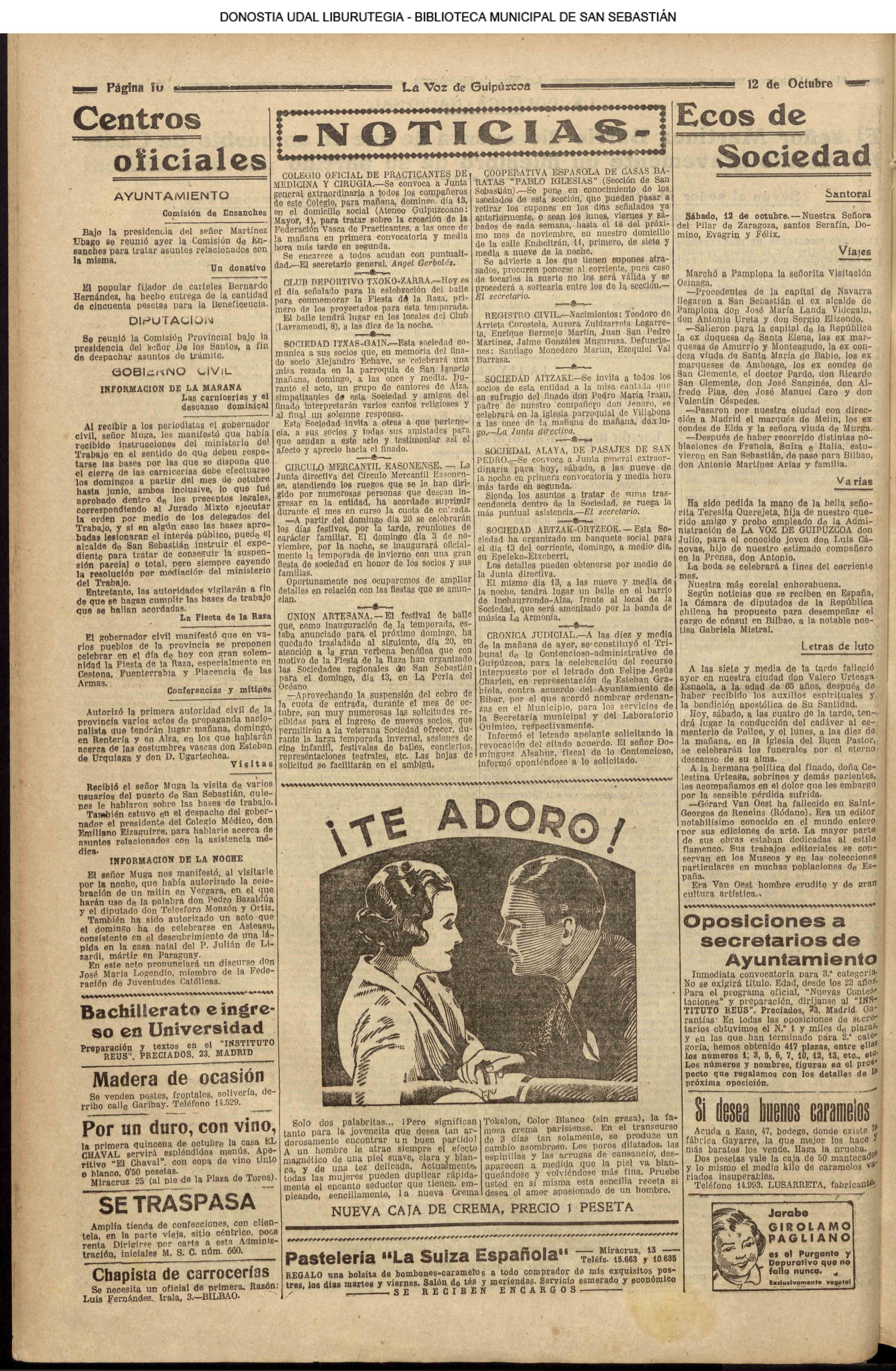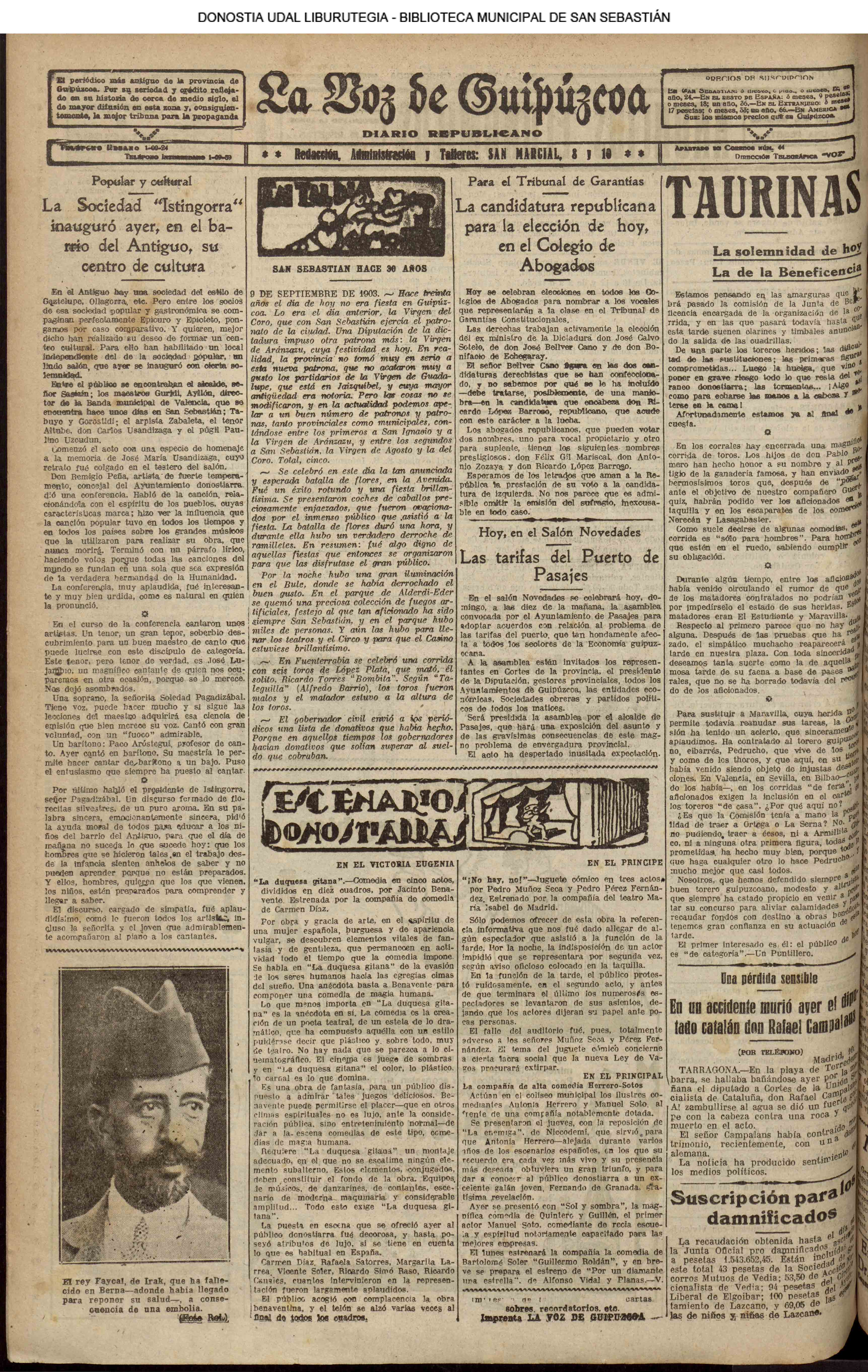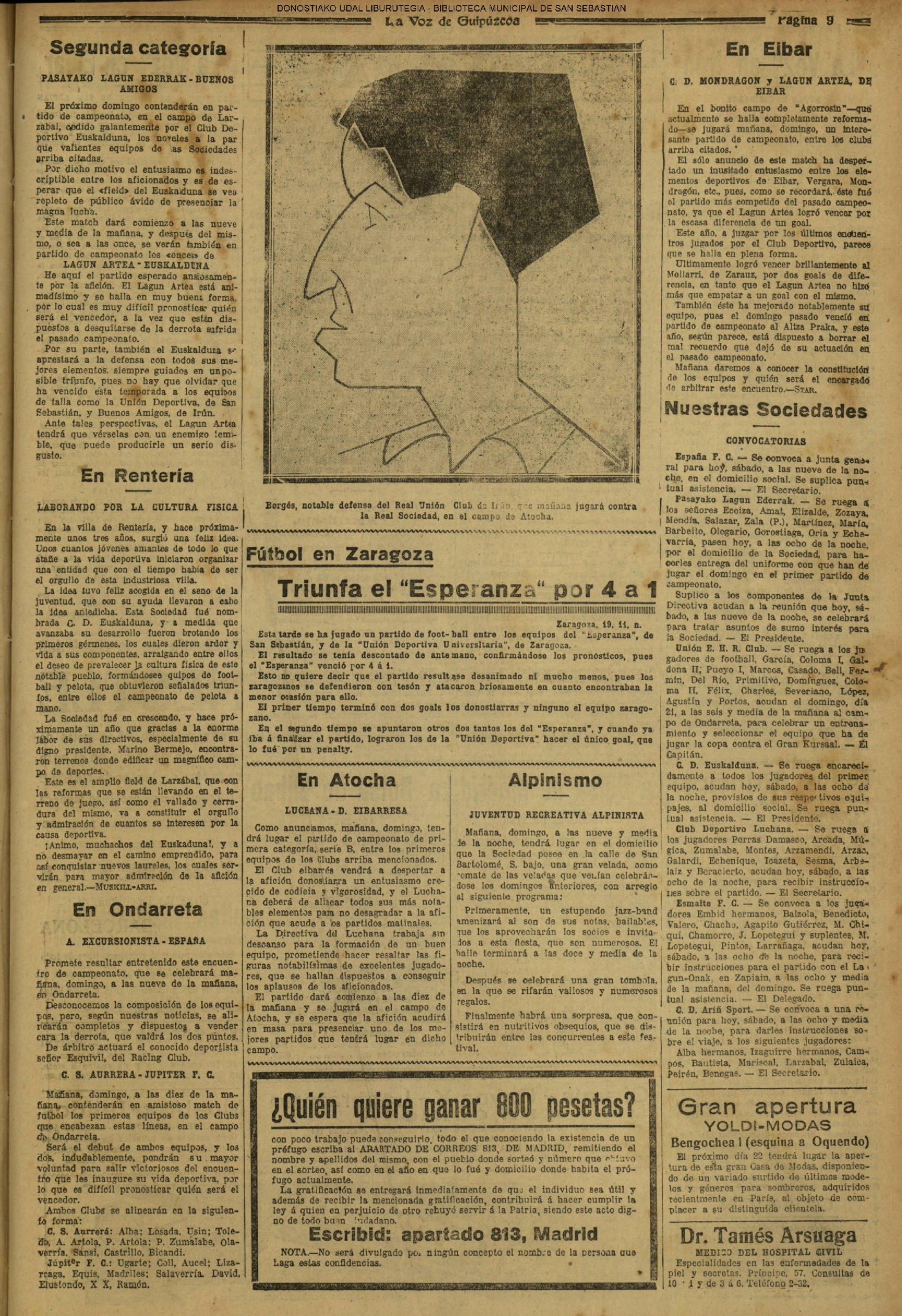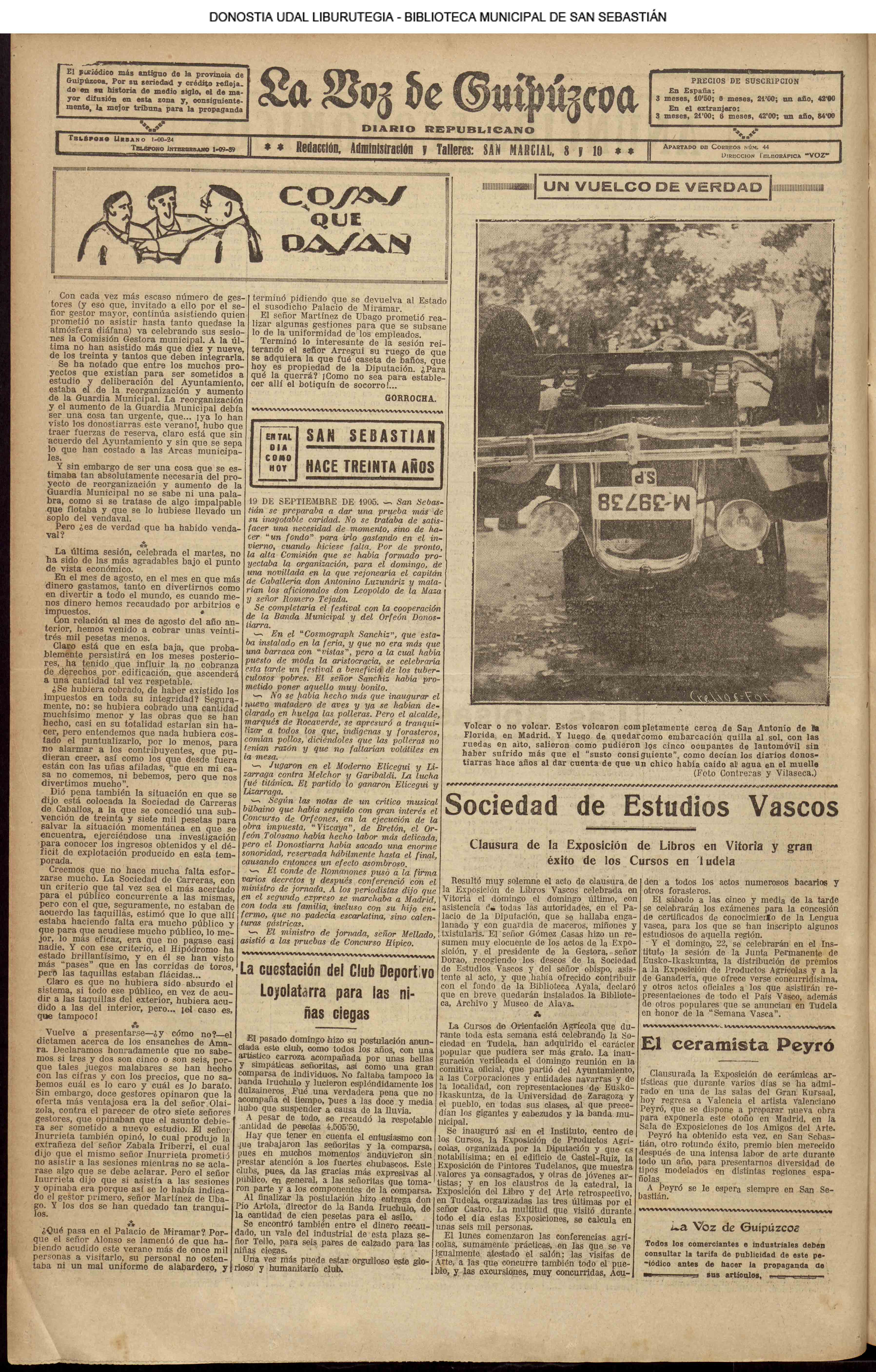 - Ateneo Guipuzcoano (1920/13.10)(1931 // 04.01 ) (1932. 06.01 ) (1935 // 04.01 ) ( 06.01 ) ( 16.01 ))(1935/20.10) (1936 // 04.01 )