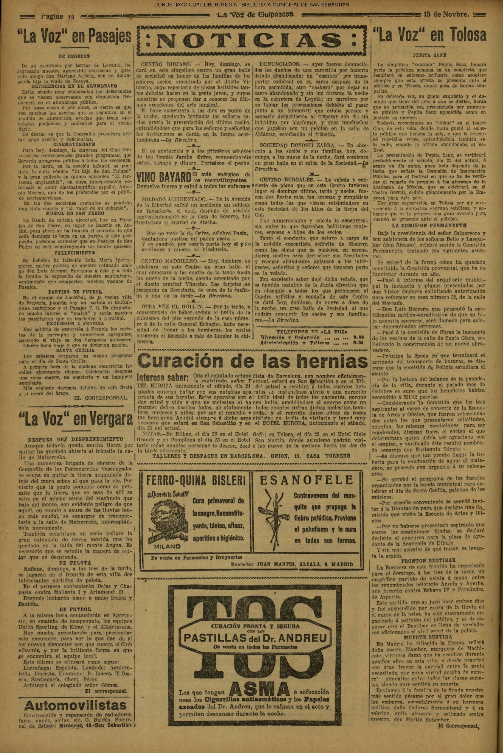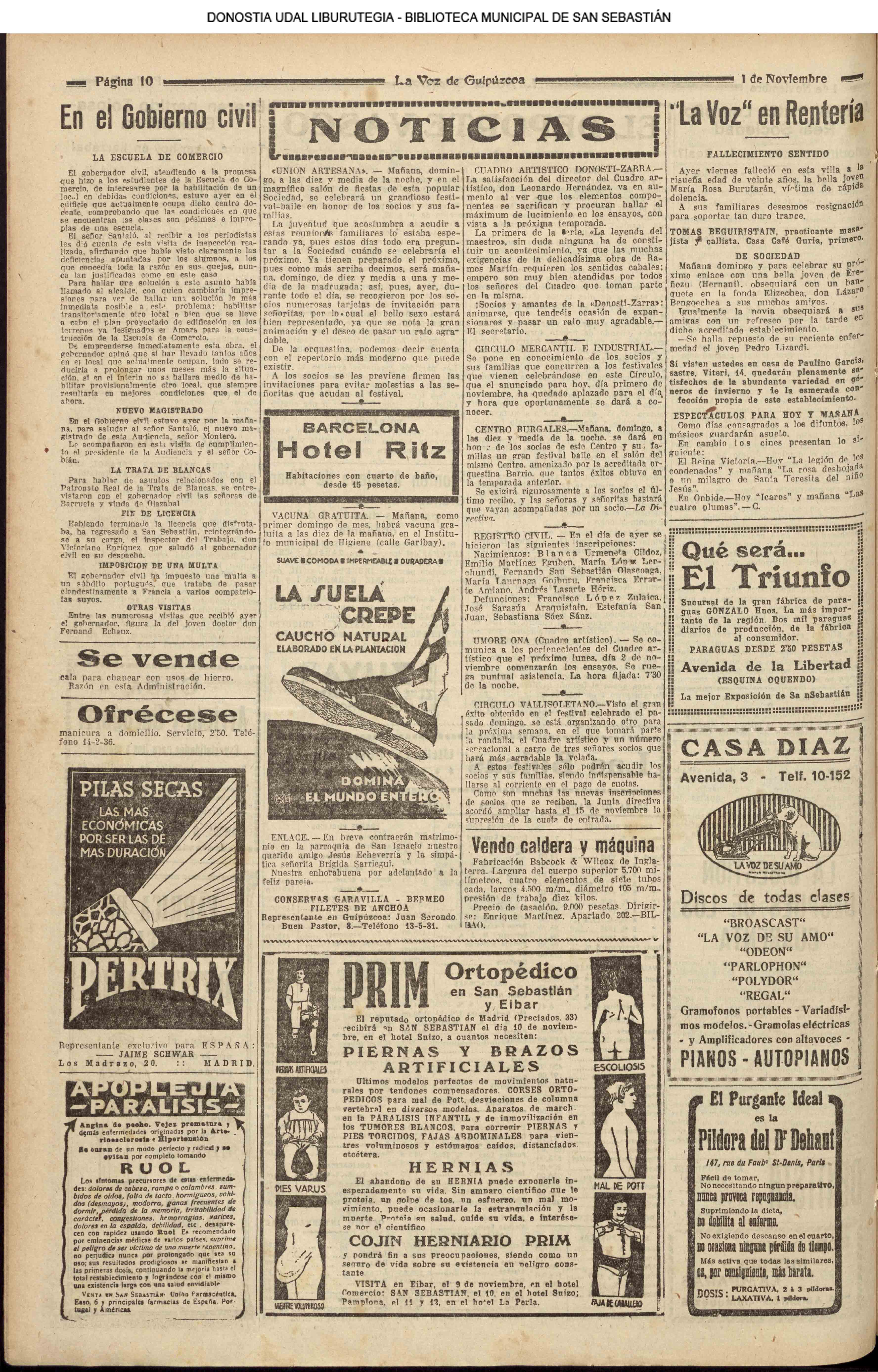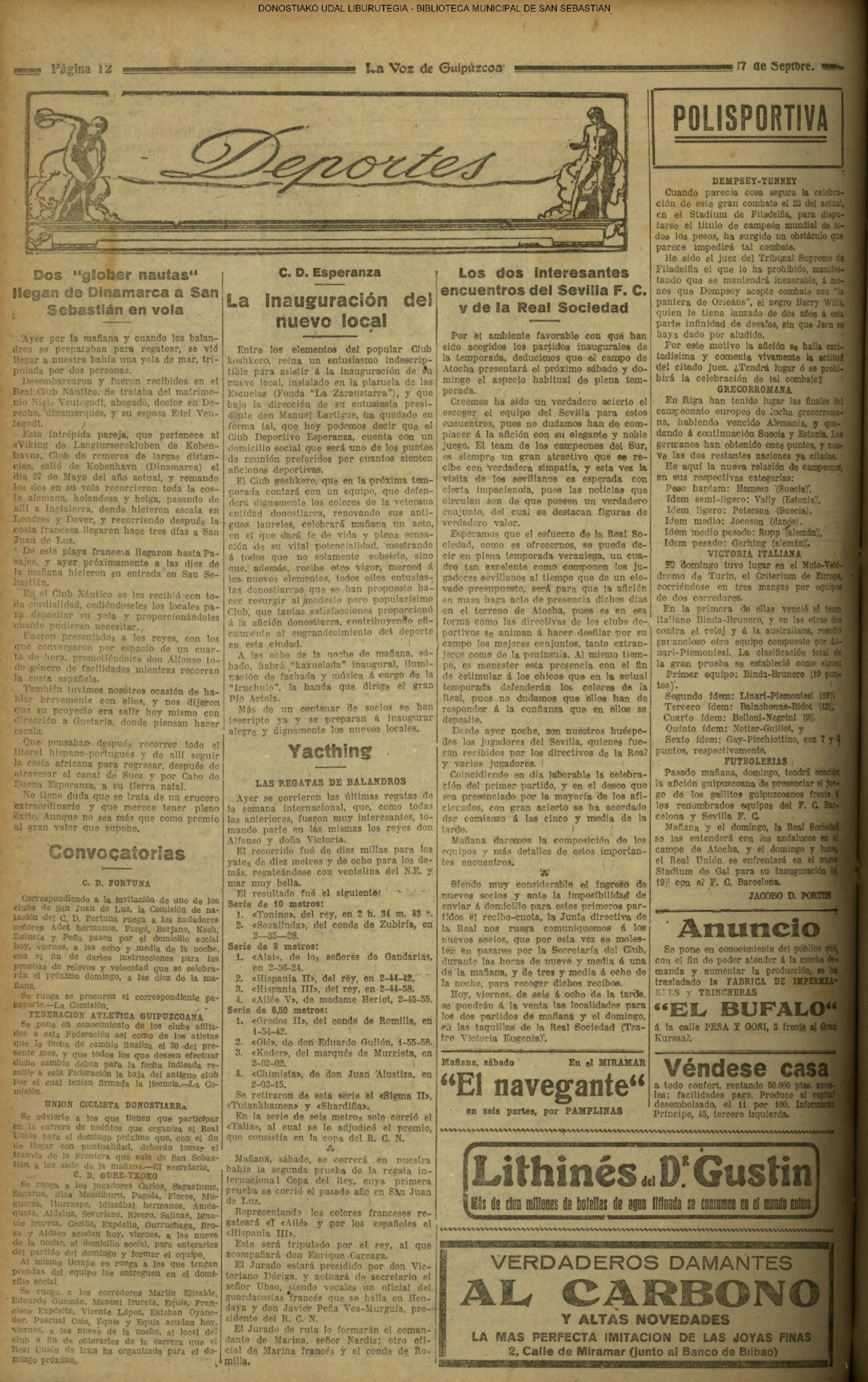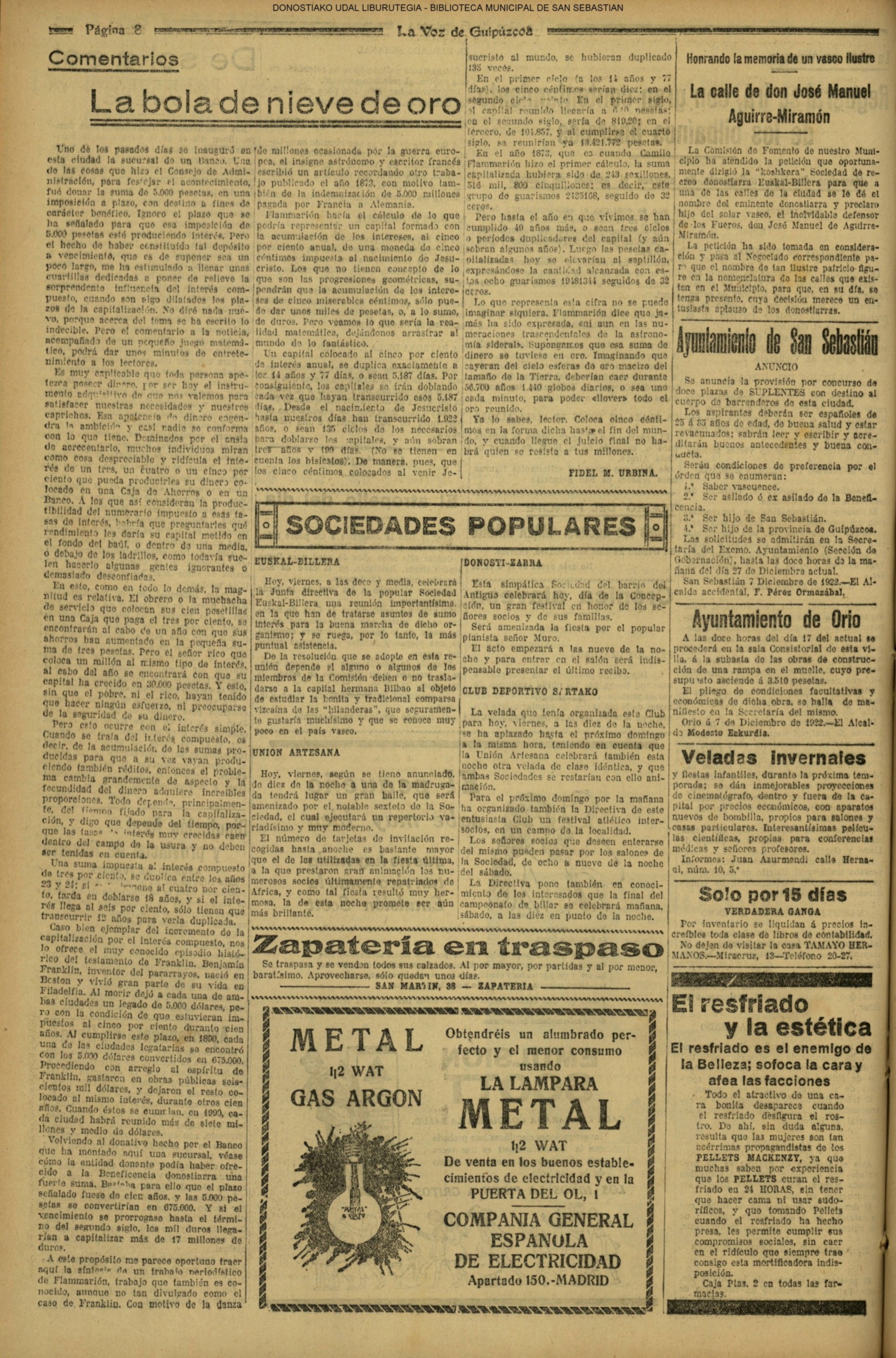 - Ateneo Guipuzcoano (1920/13.10)(1931 // 04.01 ) (1932. 06.01 ) (1935 // 04.01 ) ( 06.01 ) ( 16.01 ))(1935/20.10) (1936 // 04.01 )