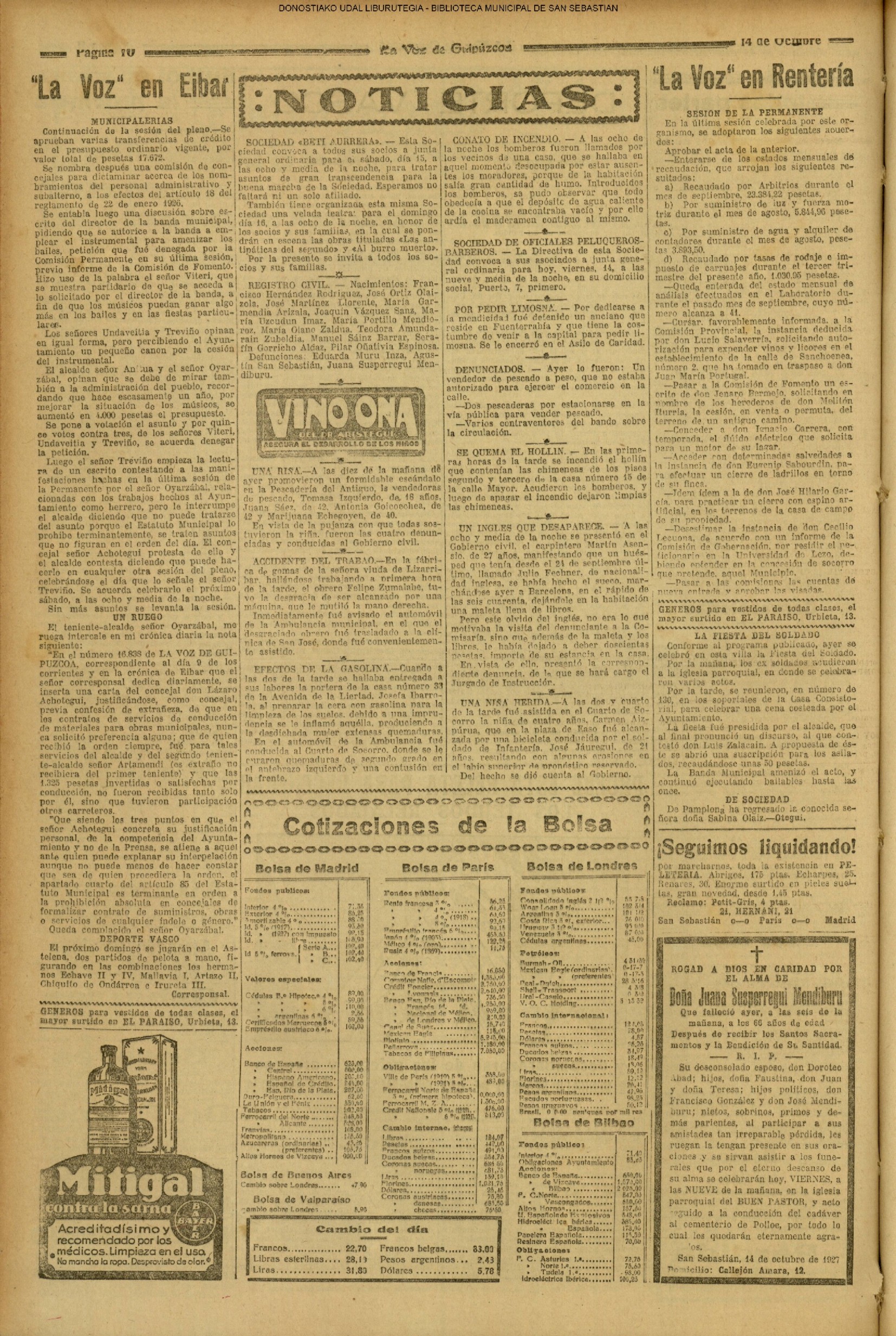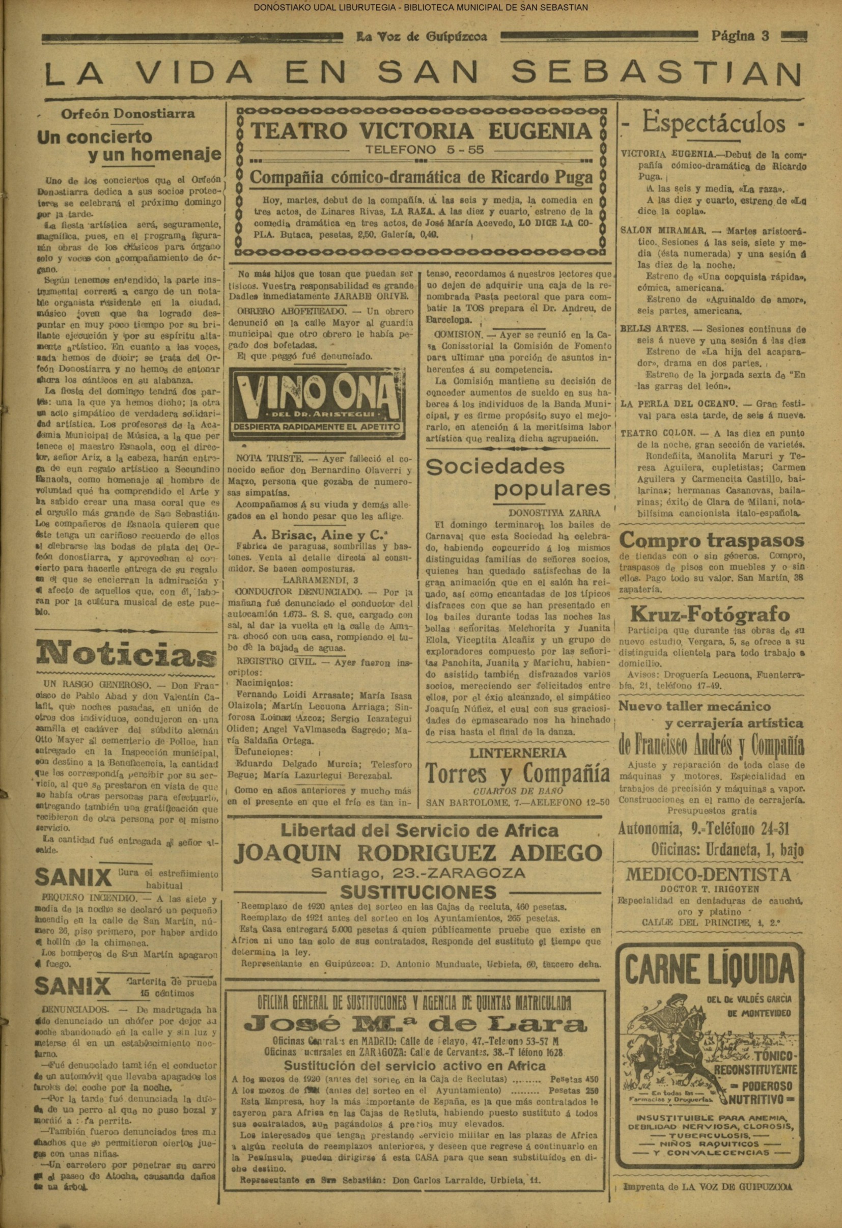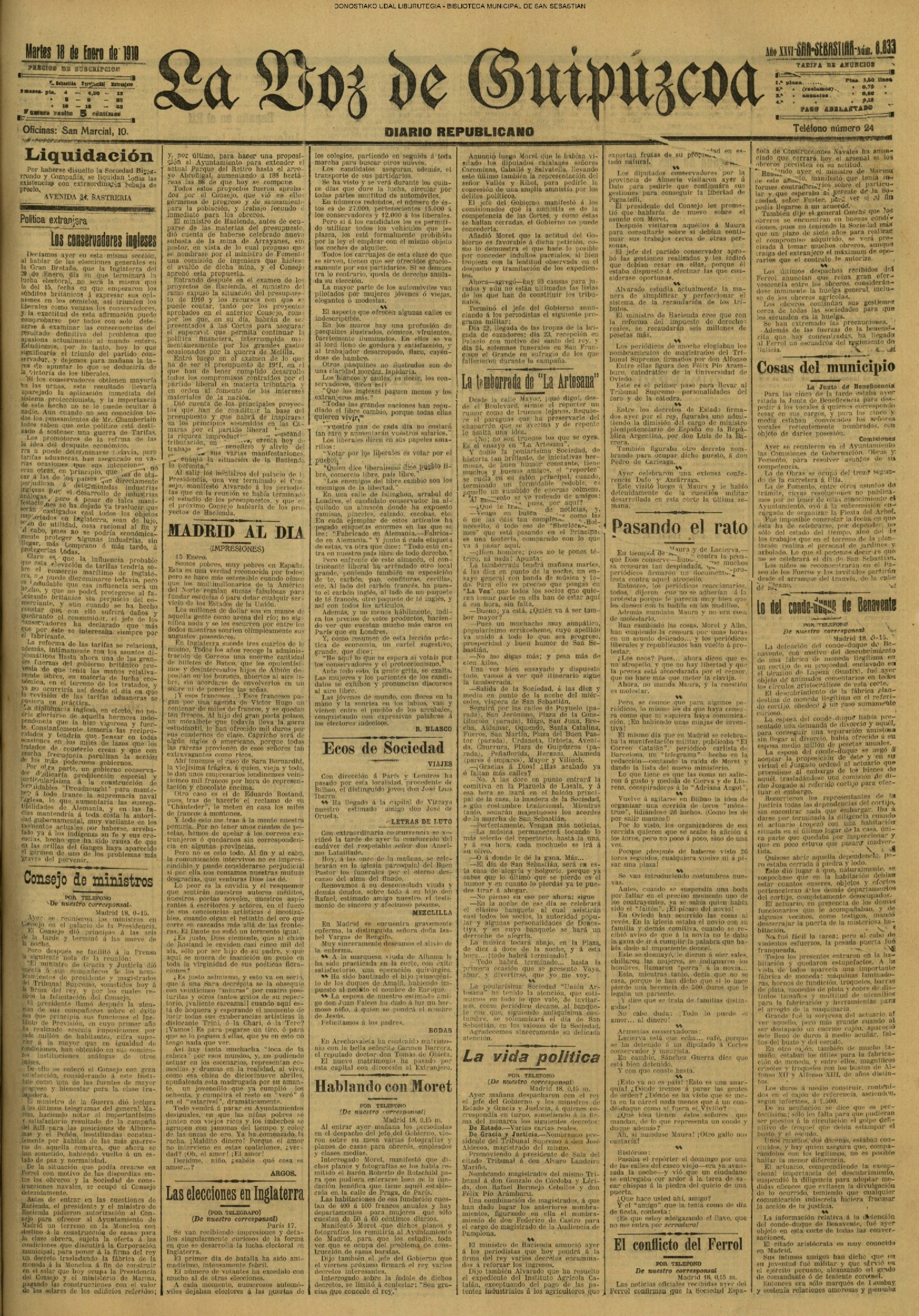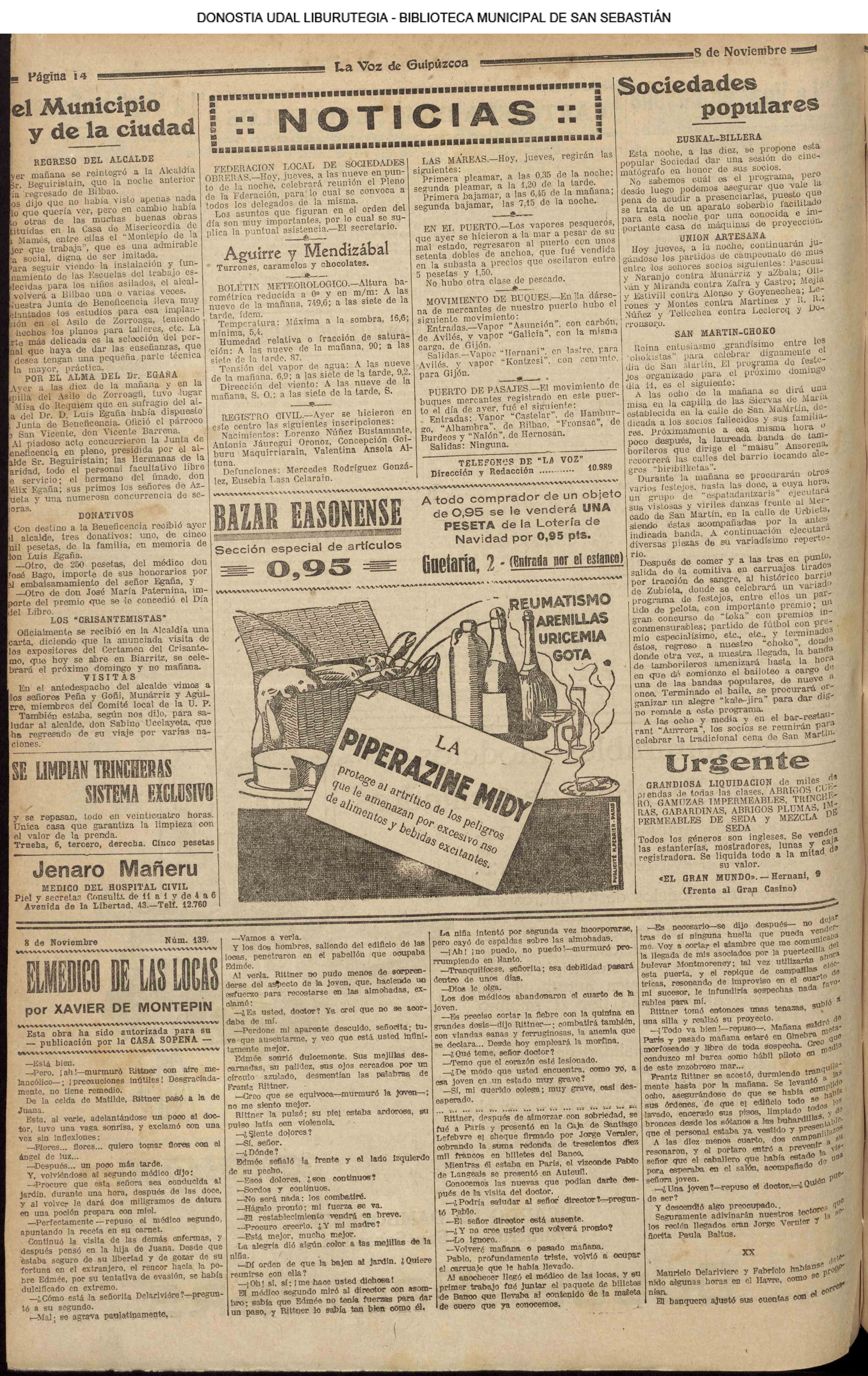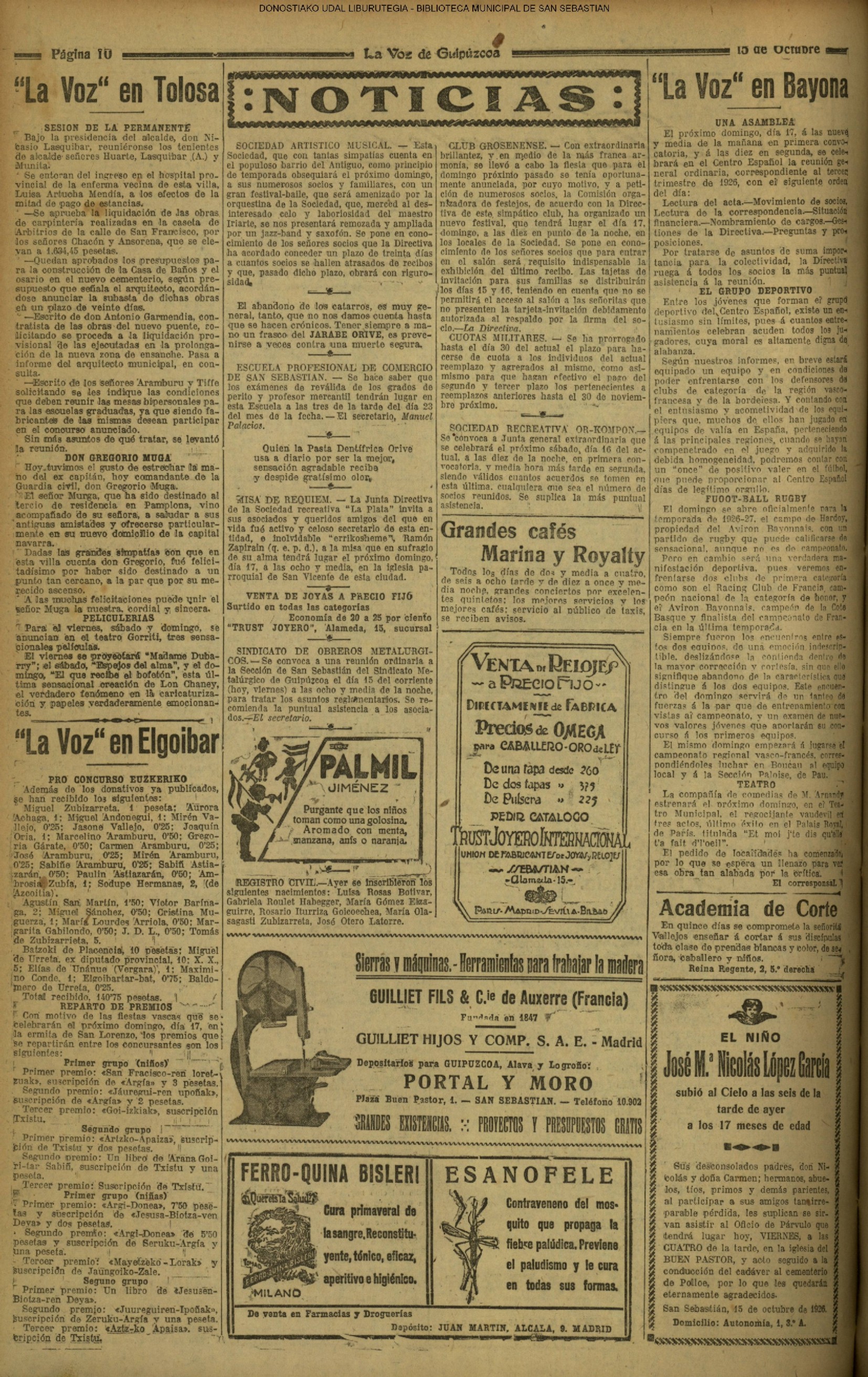 - Ateneo Guipuzcoano (1920/13.10)(1931 // 04.01 ) (1932. 06.01 ) (1935 // 04.01 ) ( 06.01 ) ( 16.01 ))(1935/20.10) (1936 // 04.01 )