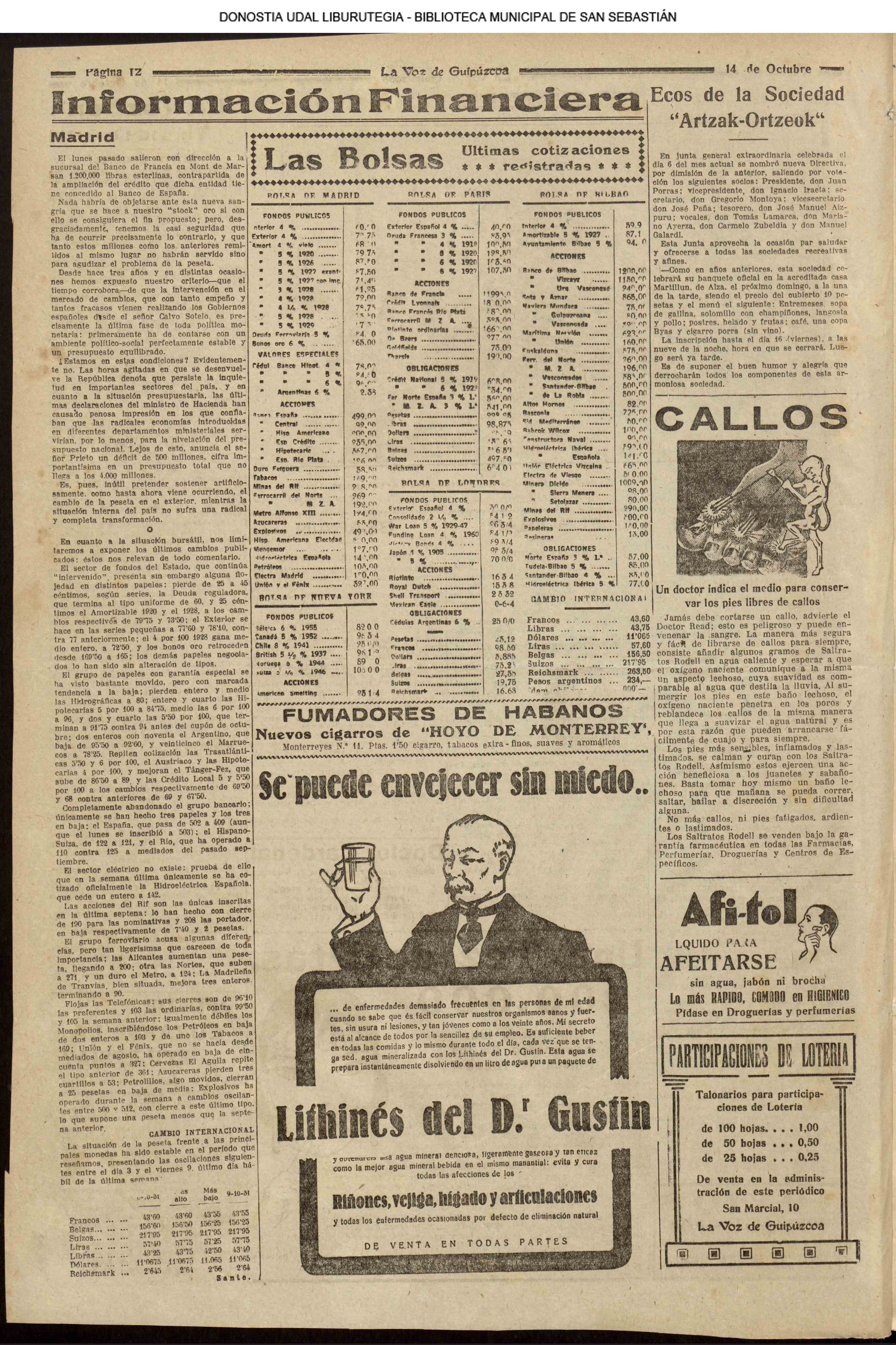 - Artzak Ortzeok (Pte.)(1921/14.02. fundación) (1932. 28.12 ) (1936 // 04.01 )(Registro de Sociedades - Alza - 1936/31.01)(1929/09.10)(1930/14.10)(1931/05.09/25.09/14.10)(1935/12.10/13.10/20.10)