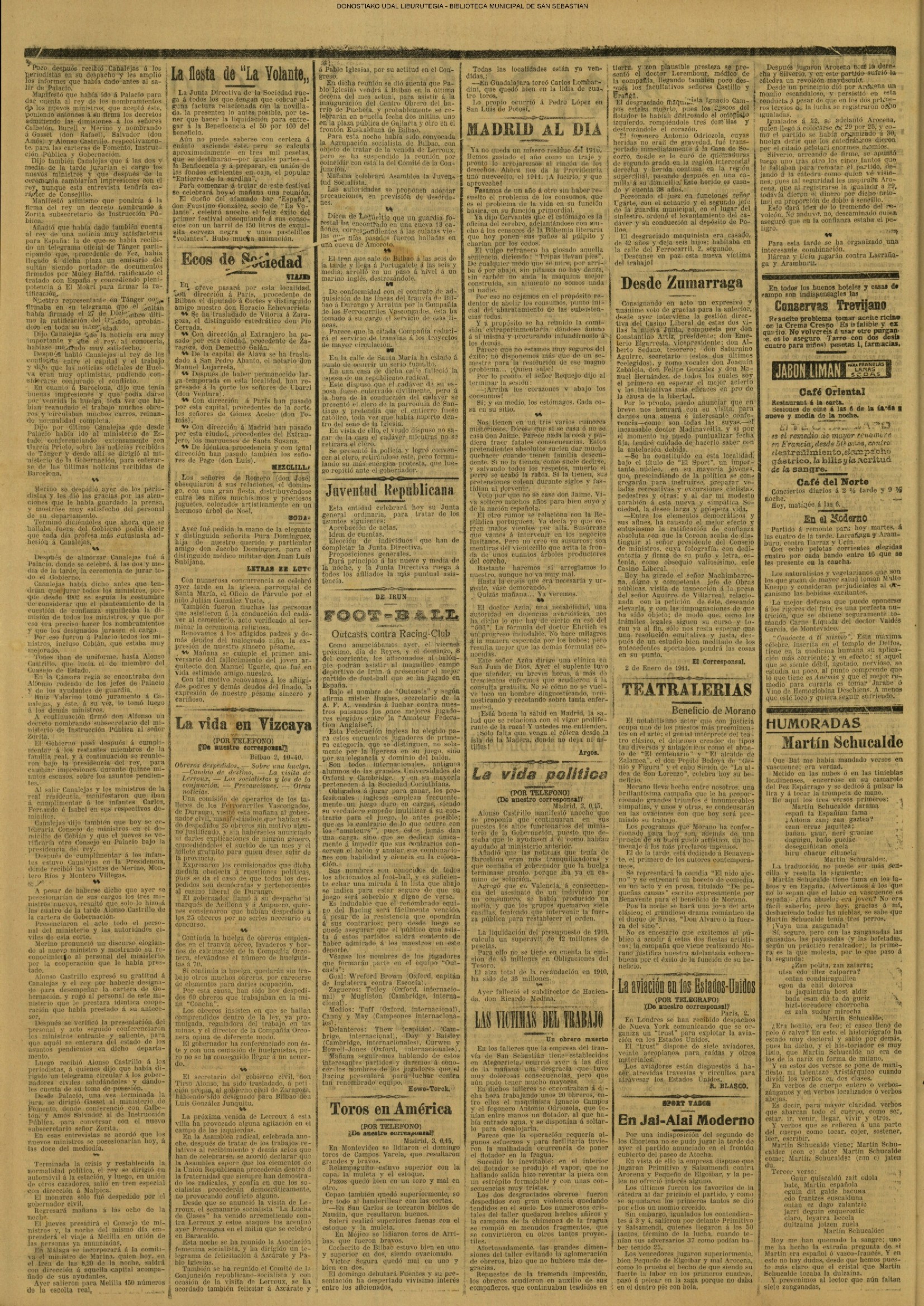 - La Volante (sin domicilio fijo)(1910/16.01)(1910/12.02/13.02)(1910/12.11)(1910 /13.11)(1910/19.11)(1911/01.01.- la novillada/03.01)(1911/21.11)(1930/19.01)