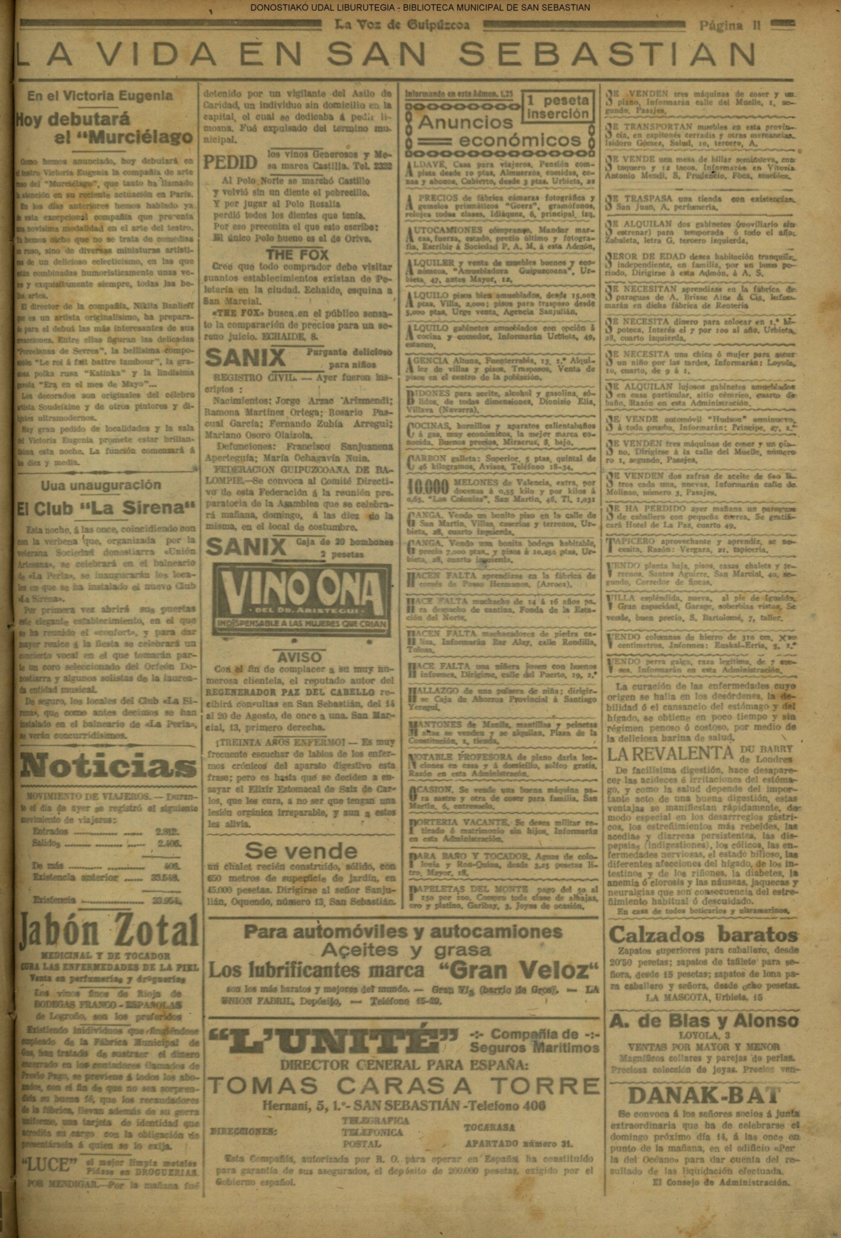 - La Unión (Registro de Sociedades - Larramendi,8 - 1933/22.01)