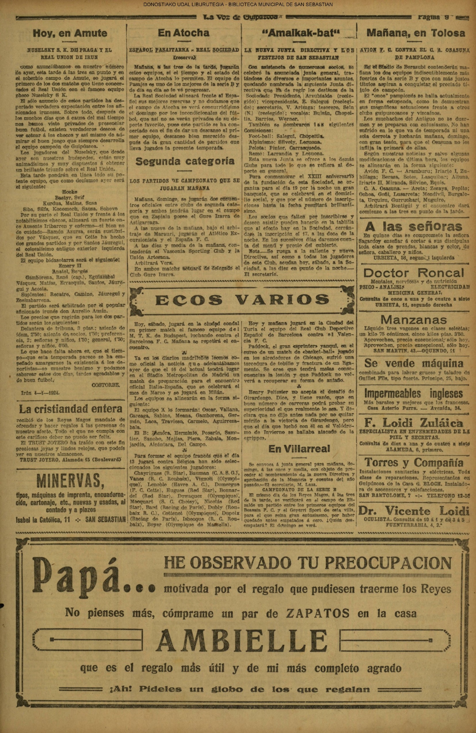 - Amara Txoko (15.05/1924.- Fundación- Nueva Sociedad de Recreo)(1924/18.10)(1925/06.11)(1926/06.11)(1926/09.11)(1927/02.01//04.01)
