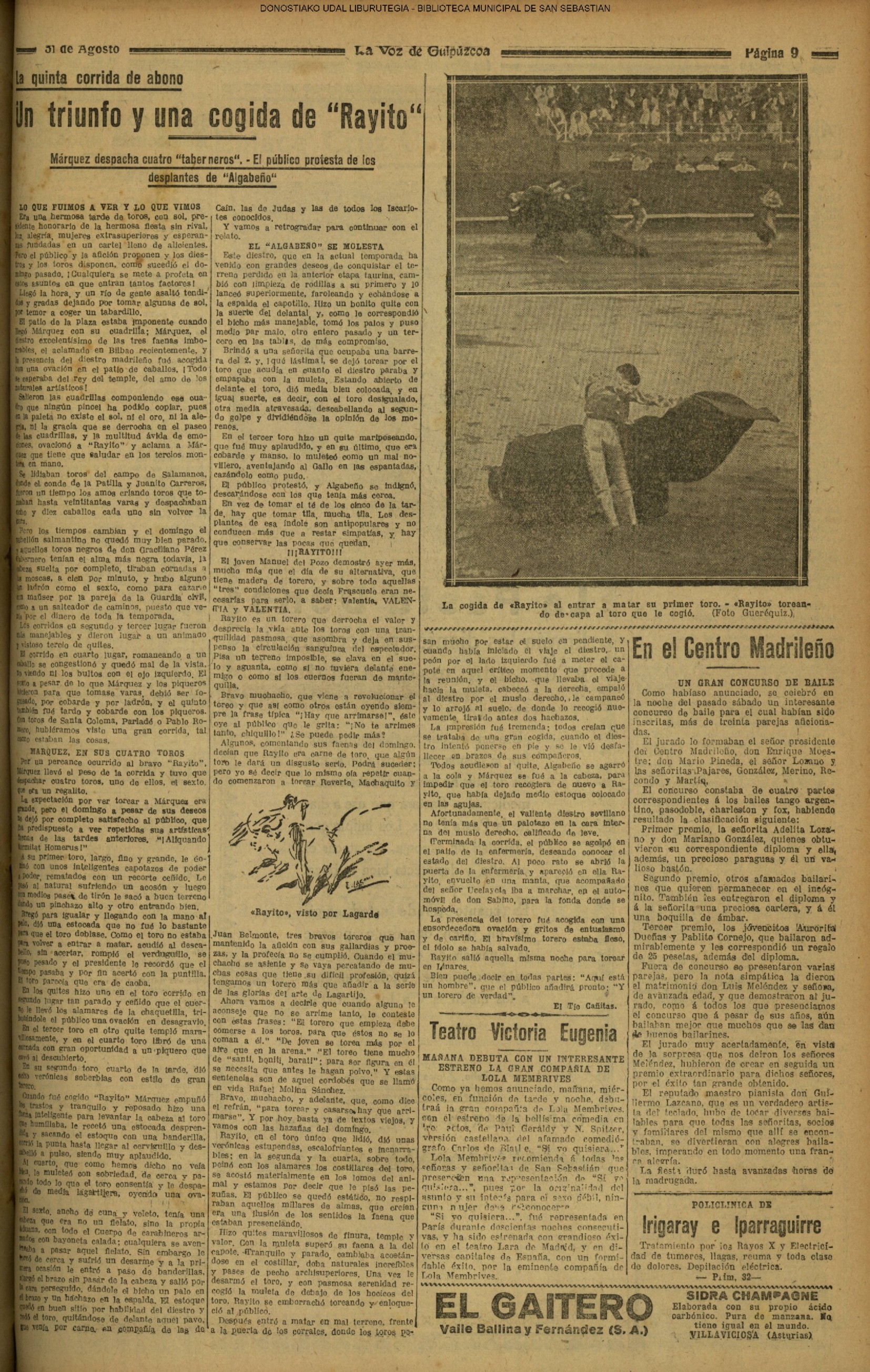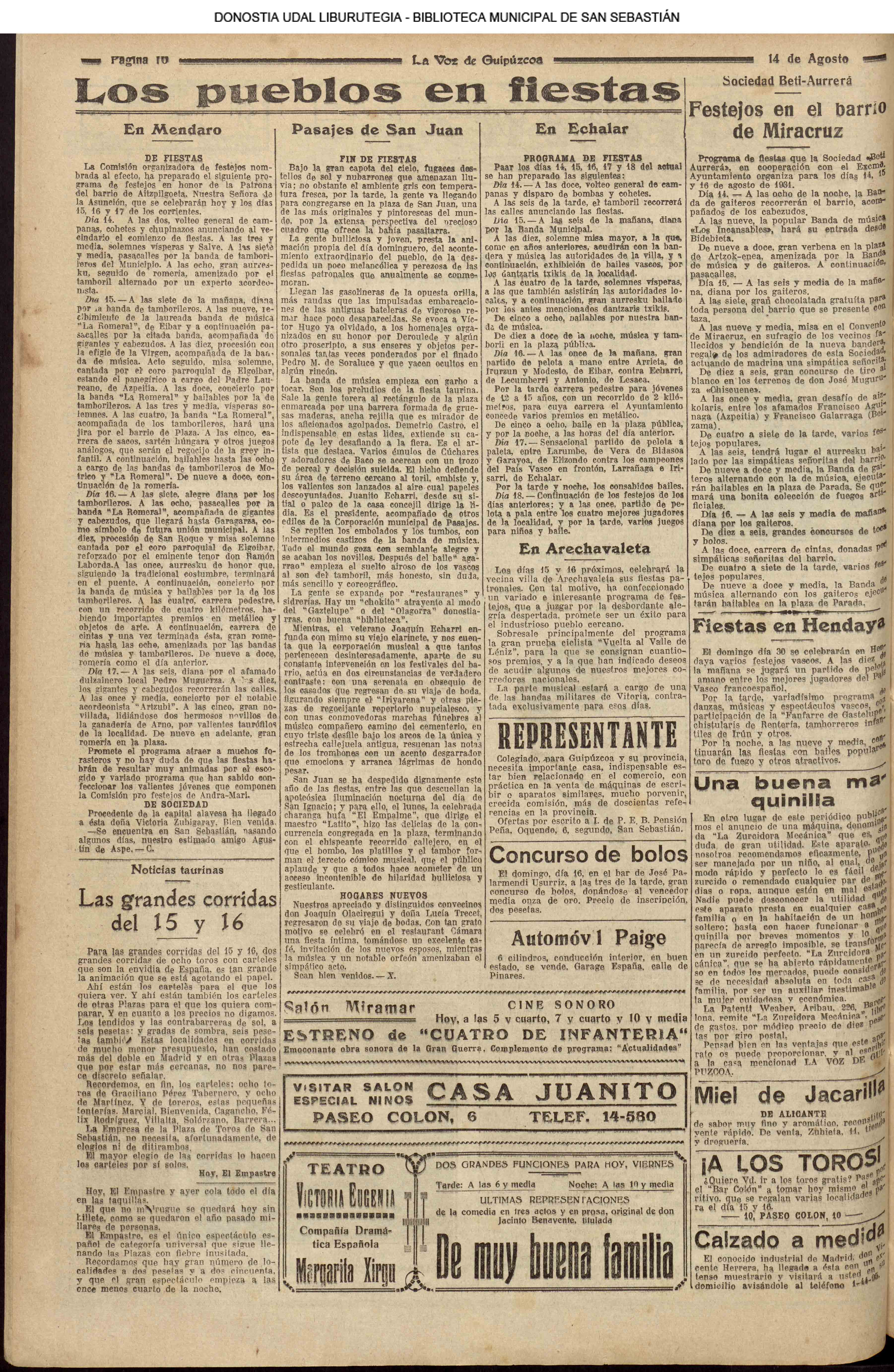 - Beti Aurrera (Alto de Miracruz)(1925- 07.11)(1926/23.05. Velada)(1929 /15.08- festejos)(1931/14.08/19.08.-foto)(1934/18.08.festejos)(1935/10.01)