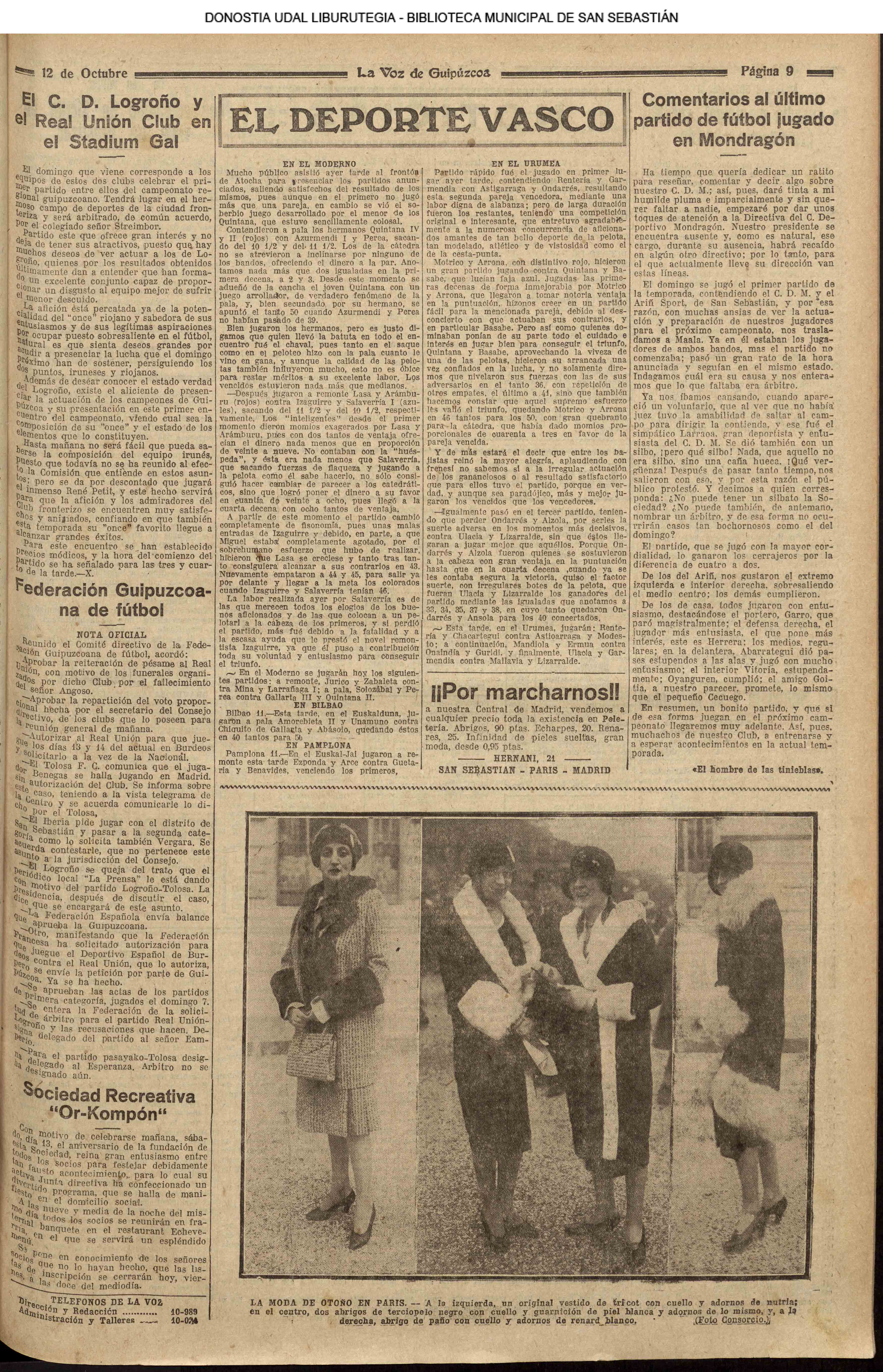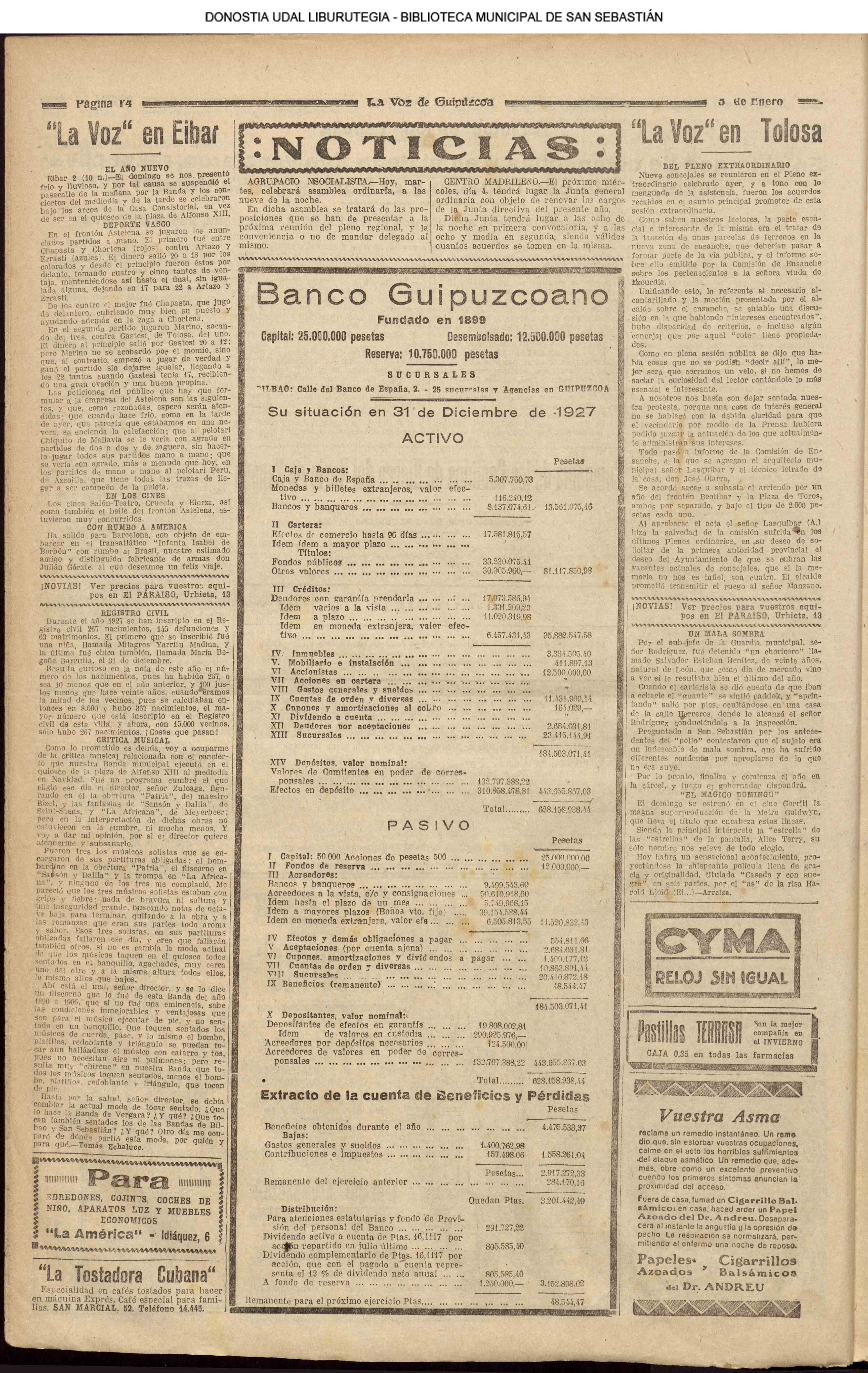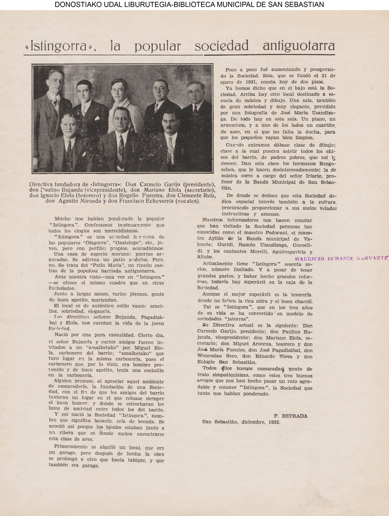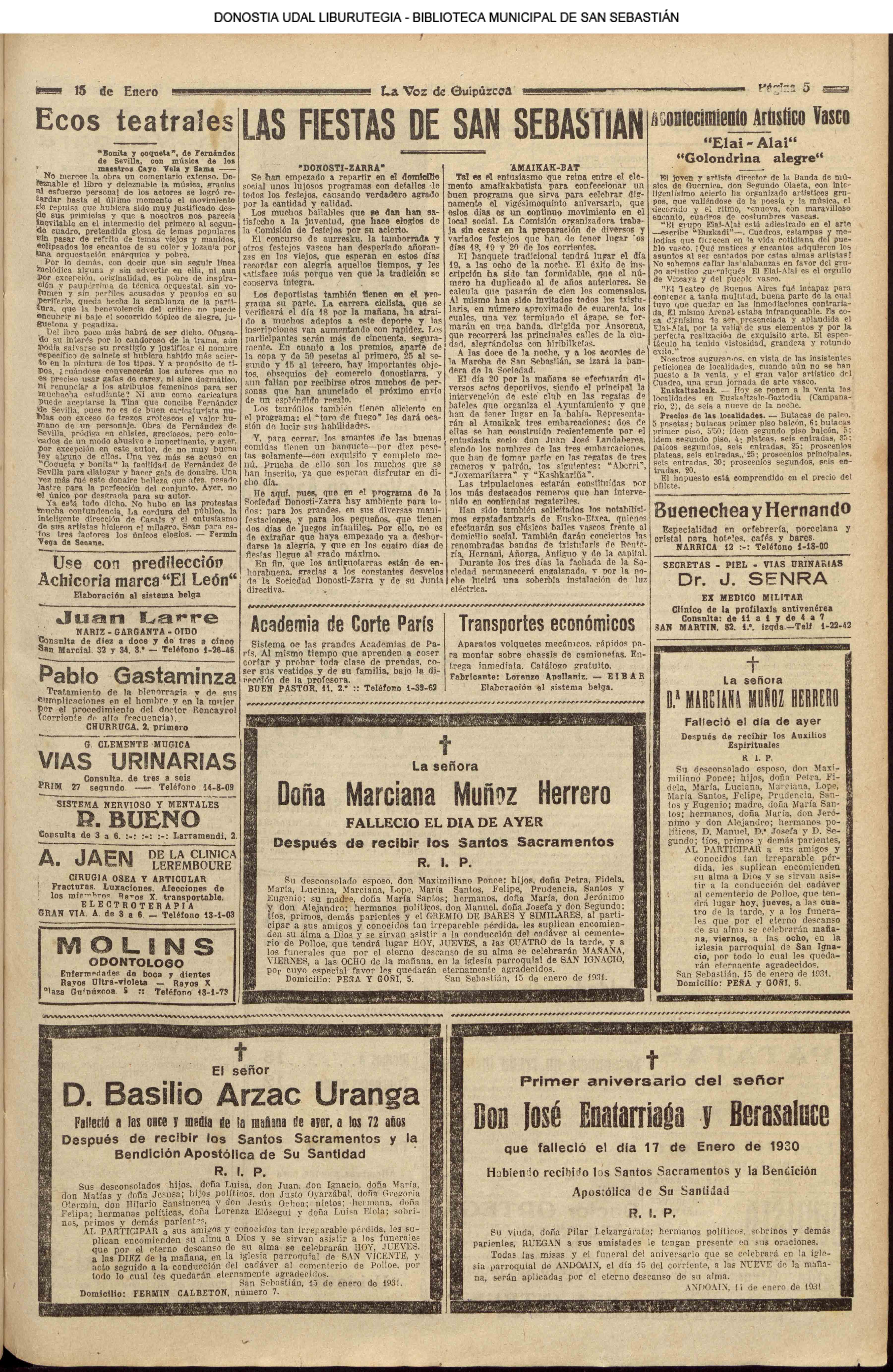 - Ateneo Guipuzcoano (1931 // 04.01 ) (1932. 06.01 ) (1935 // 04.01 ) ( 06.01 ) ( 16.01 )) (1936 // 04.01 )