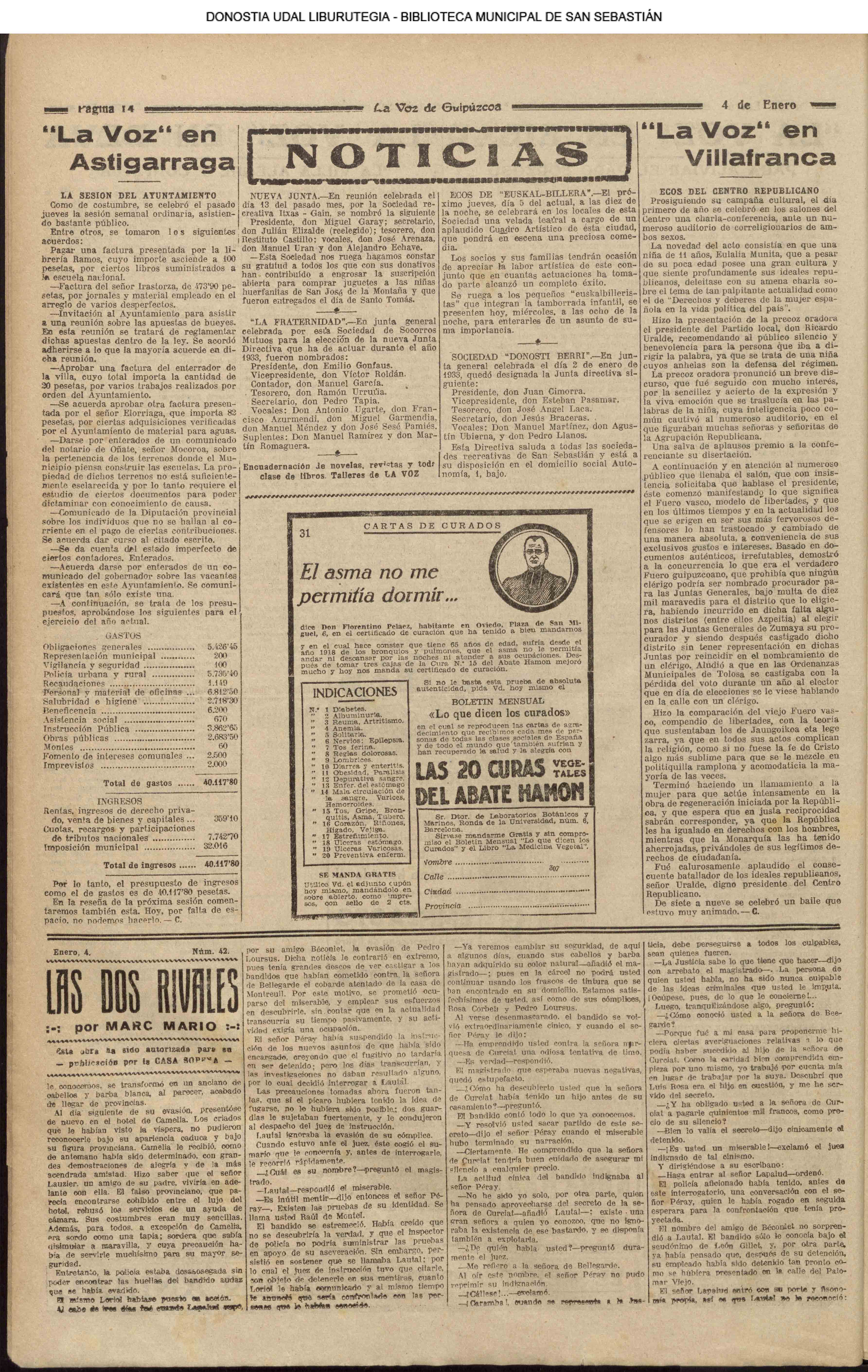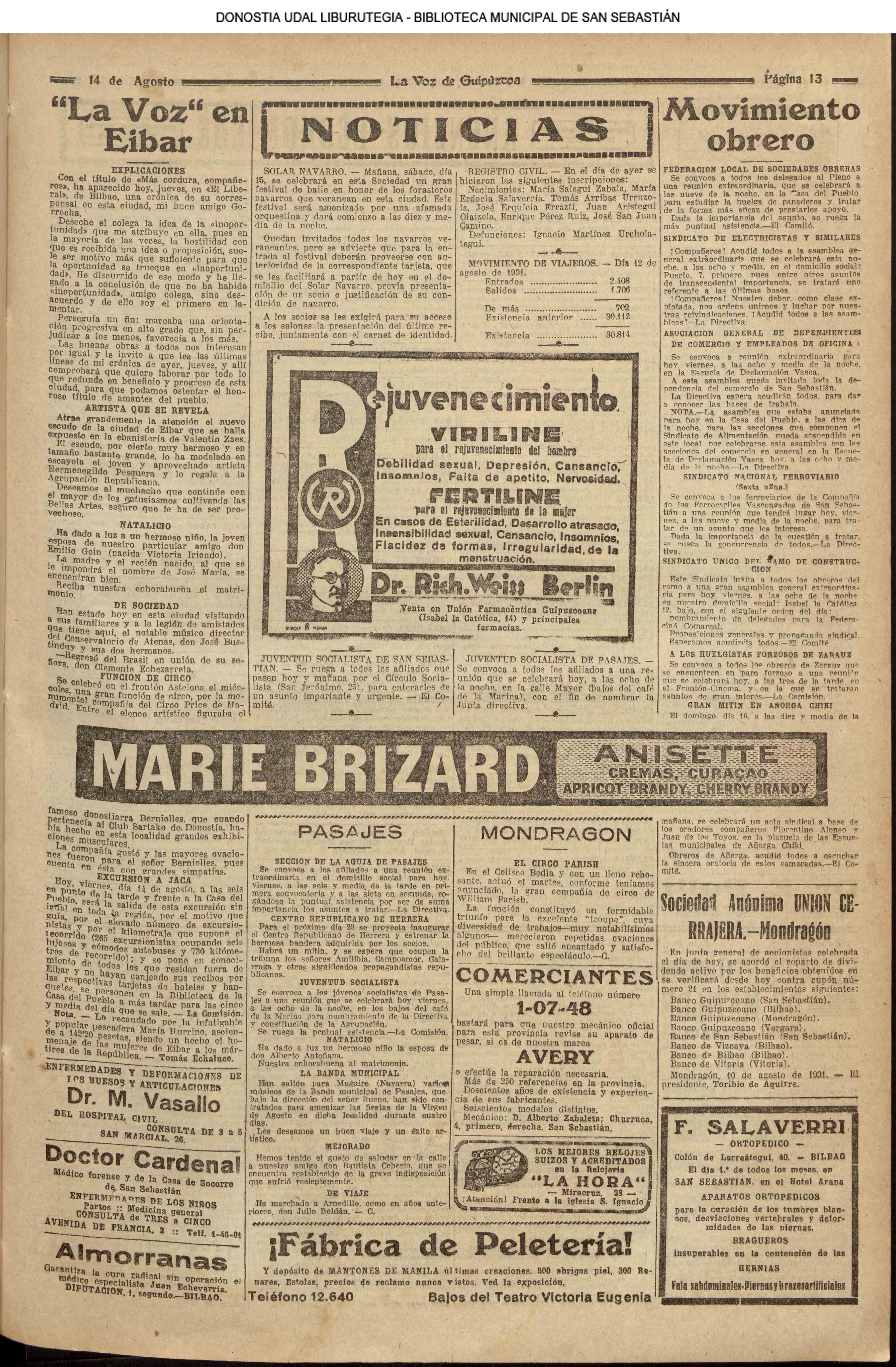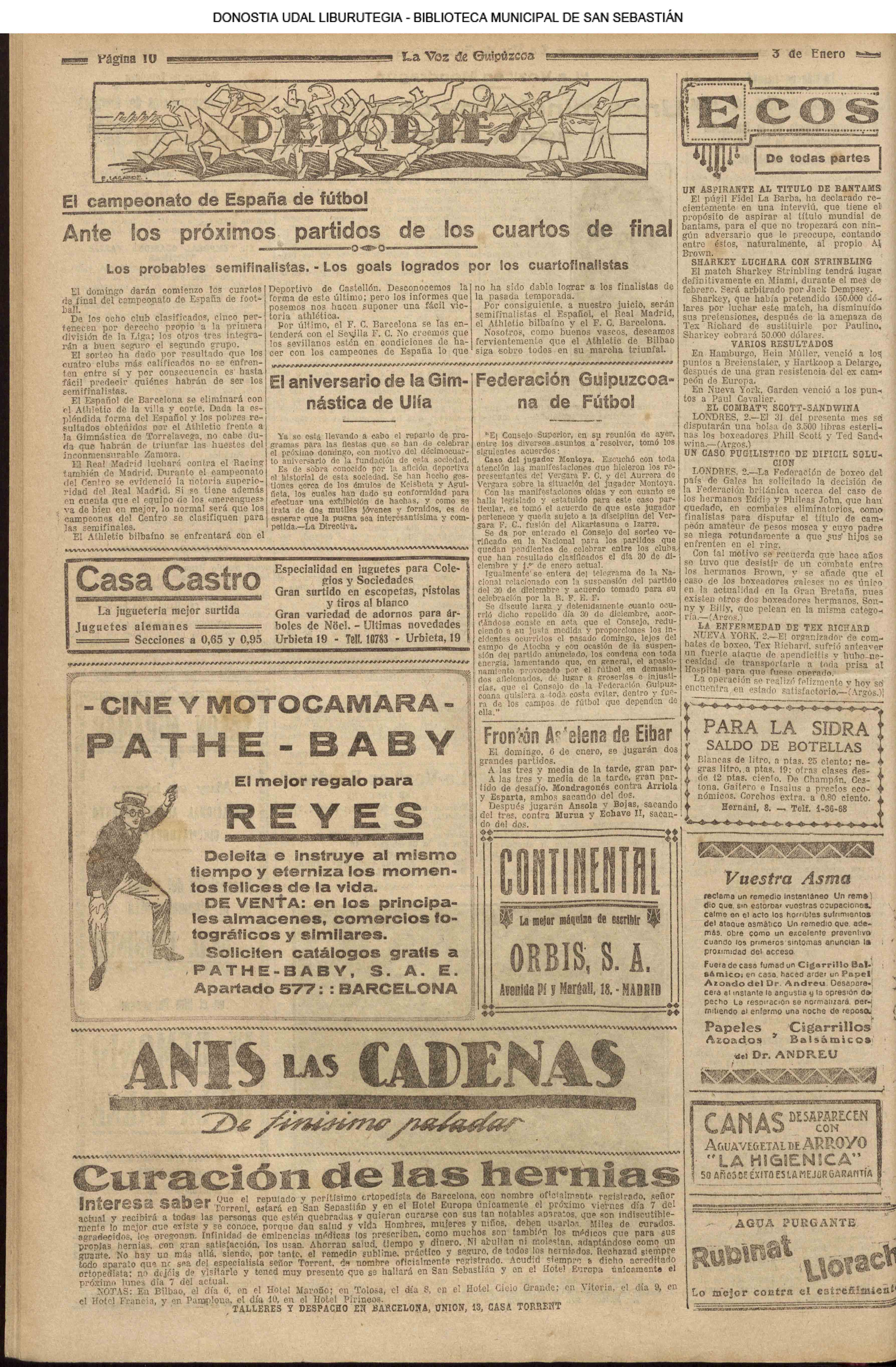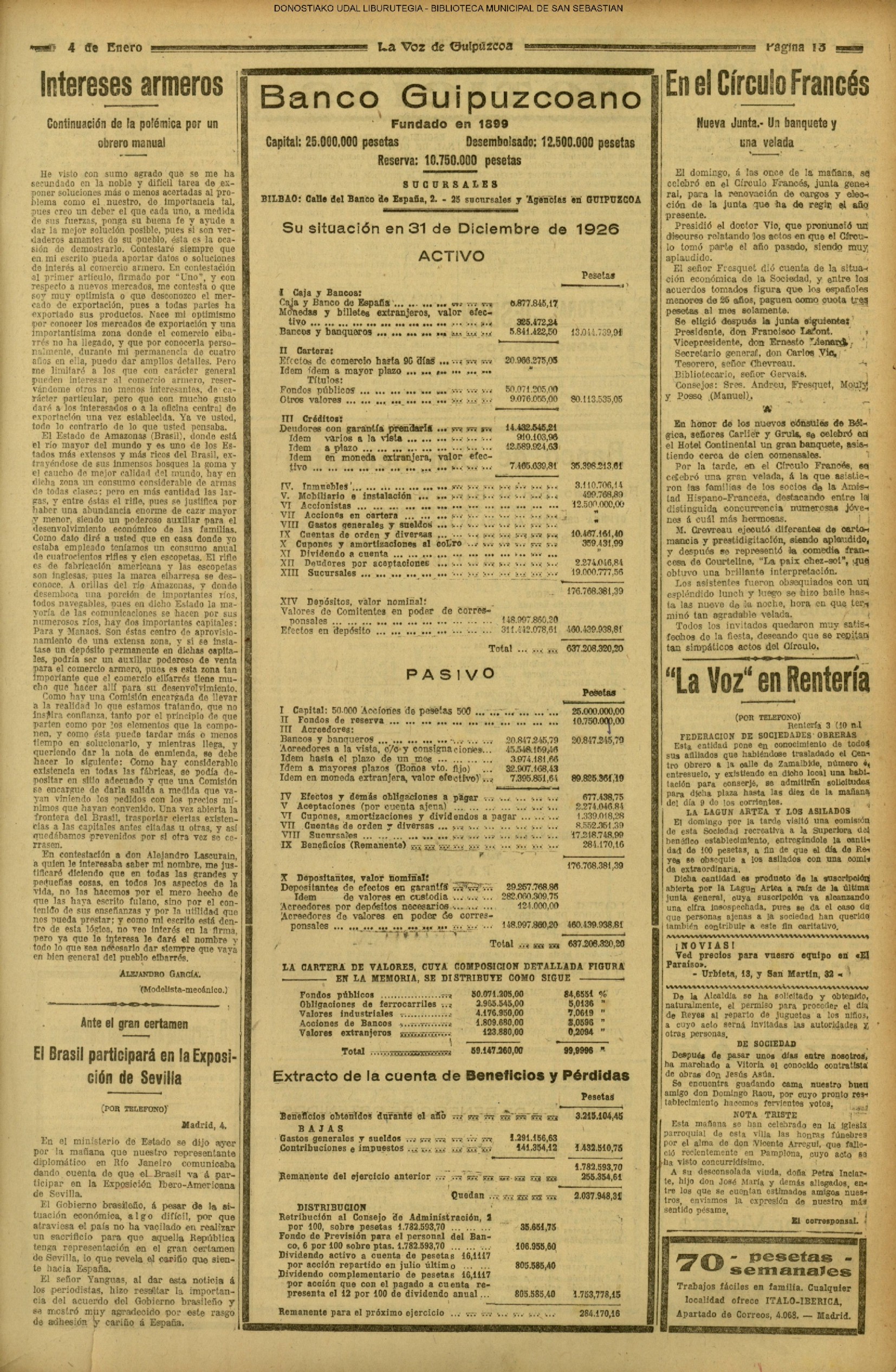 - Ateneo Guipuzcoano (1931 // 04.01 ) (1932. 06.01 ) (1935 // 04.01 ) ( 06.01 ) ( 16.01 )) (1936 // 04.01 )